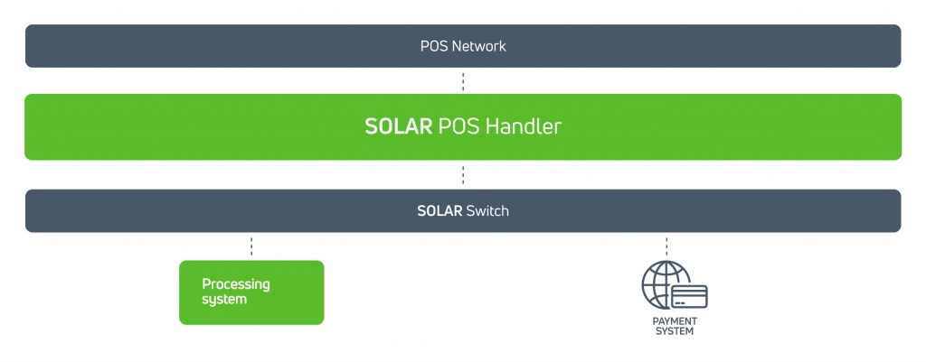 SOLAR POS Handler puede combinarse con SOLAR Acquiring. El resultado es una solución versátil de procesamiento de transacciones y de back office que le ayudará a realizar el seguimiento de las tarifas, le facilitará la configuración de límites ajustables y realiza liquidaciones flexibles con los comerciantes, incluida la liquidación por grupo de terminales y otros canales de adquisición.